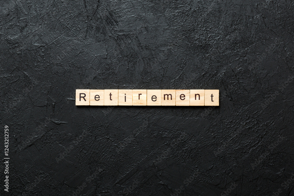 retirement word written on wood block. retirement text on cement table for your desing, concept