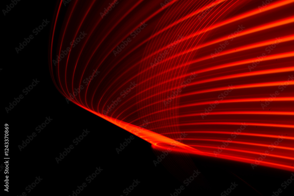 Vibrant red light streaks are dynamically creating intricate patterns and shapes against a contrasting dark backdrop