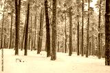 Scenic panorama of a beautiful snowy spruce and pine forest. Natural winter landscape.