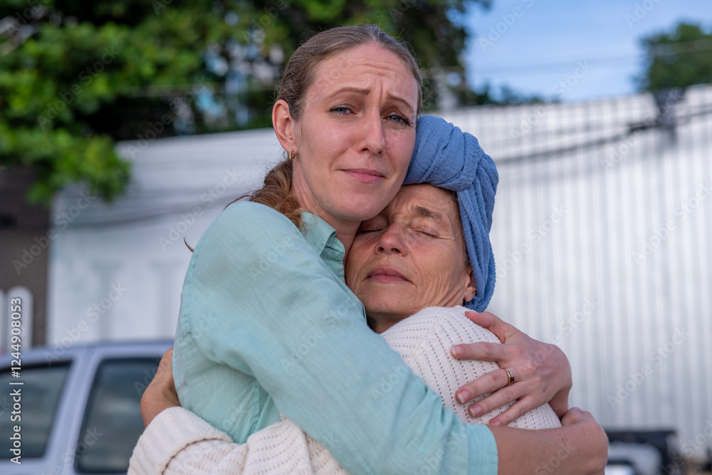 Moment friend support, resilience, and compassion, often associated with of battling cancer wearing a headscarf, a common symbol of strength among cancer patients undergoing treatment.