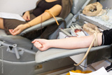 Blood sampling from a hand of the person. Donorship. Blood trans