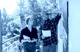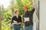 customer architect and builder contractor at construction site discuss calculate plan inspect