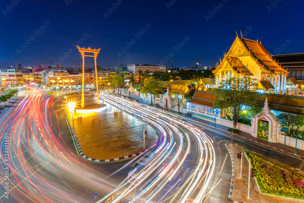 The Giant Swing with Temple of Buddha at dusk (Bangkok, Thailand)