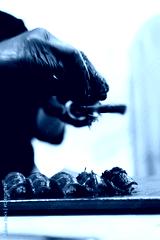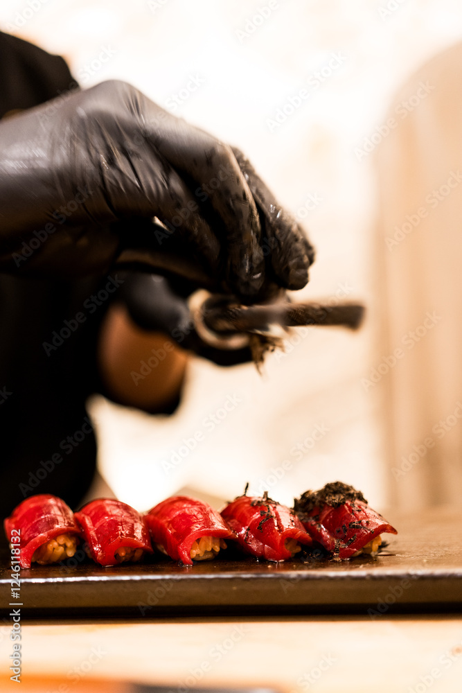 Close up of chef making fresh sushi in the restaurant. Japanese Omakase in the restaurant