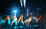 The businessman uses AI to analyze clean energy investments, enabling more informed decision-making and reducing risks in a rapidly evolving market.