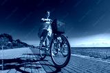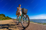 Physical activity at summertime. Two beautiful middle aged women riding city bikes on bicycle path on seafront on sunny day in summer. Front view