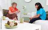 Teenage Therapy: Candid Conversation. An early teenage girl and her mature counsellor in conversation.