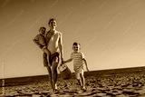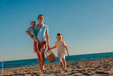 Two boys enjoying a day at the beach with their mom