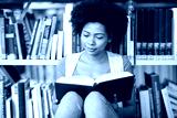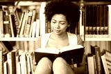 african student girl reading book at library