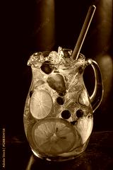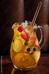 Refreshing Summer Beverage Blends Vibrant Fruits and Ice in a Clear Pitcher, Perfect for Casual Outdoor Gatherings During Warm Evenings