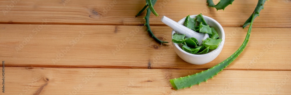 Aloe vera essential oil in a small bottle. Selective focus