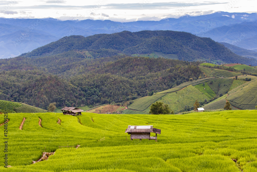 Green Terraced Rice Field in Pa Pong Pieng , Mae Chaem, Chiang Mai, Thailand