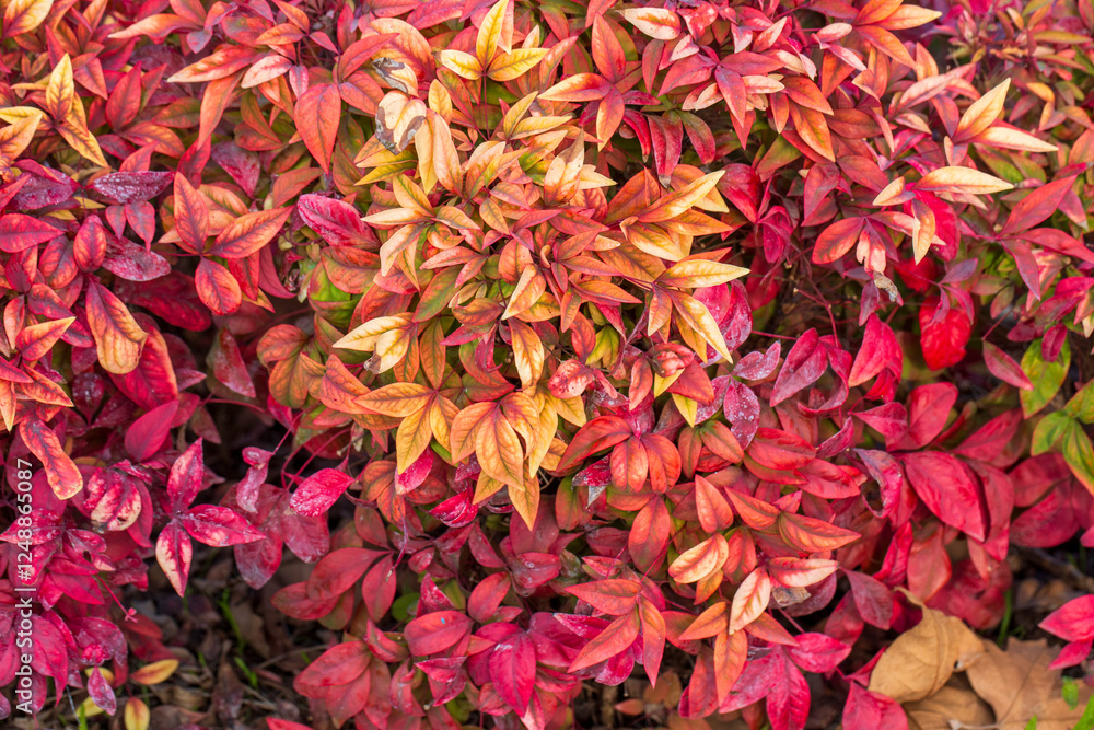 Nandina domestica Blush Pink. The Nandina domestica is commonly known as nandina, heavenly bamboo or sacred bamboo. The leaves change color with season.