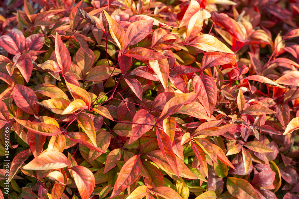 Nandina domestica Blush Pink. The Nandina domestica is commonly known as nandina, heavenly bamboo or sacred bamboo. The leaves change color with season.