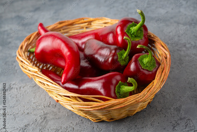 Red capia pepper on rustic wooden background