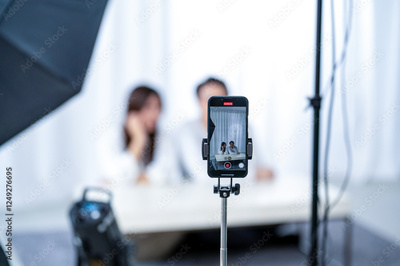 照明を使って動画撮影をする日本人男女