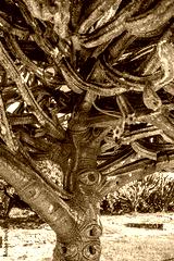 Myrtillocactus geometrizans, garambullo, old cactus tree in the pyramid of El Cerrito in Queretaro