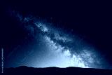 Milky Way and pink light at mountains. Night colorful landscape. Starry sky with hills at summer. Beautiful Universe. Space background with galaxy. Travel background