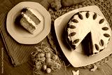 Sliced homemade carrot cake with mascarpone cream cheese icing and mini marzipan carrot decorations with Easter eggs and decorations