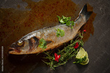 Deliciously Seasoned Raw Fish Garnished With Fresh Herbs and Vibrant Spices on a Rustic Slate Backdrop for a Culinary Masterpiece