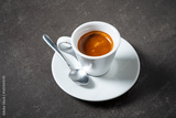 Rich Espresso Served in a Small White Cup on a Sleek Dark Surface, Inviting Warmth and Comfort With Each Sip of Bold Coffee Goodness