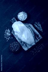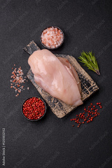 Raw chicken or turkey fillet with salt, spices and herbs
