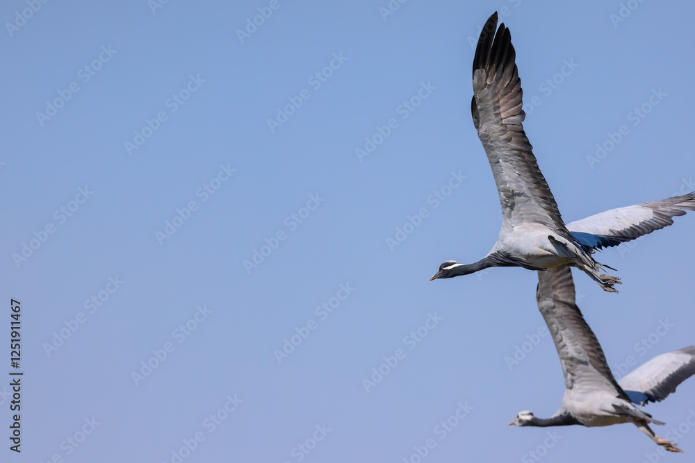 Demoiselle crane birds migrate to Rajasthan, India from Mongolia during winter time