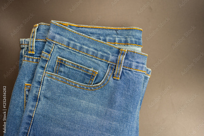 Stylish light blue jeans, closeup of inset pocket. Small jeans pocket