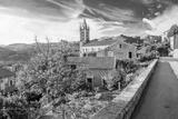 Church in Zonza village with typical stone houses during sunset, Corsica, France