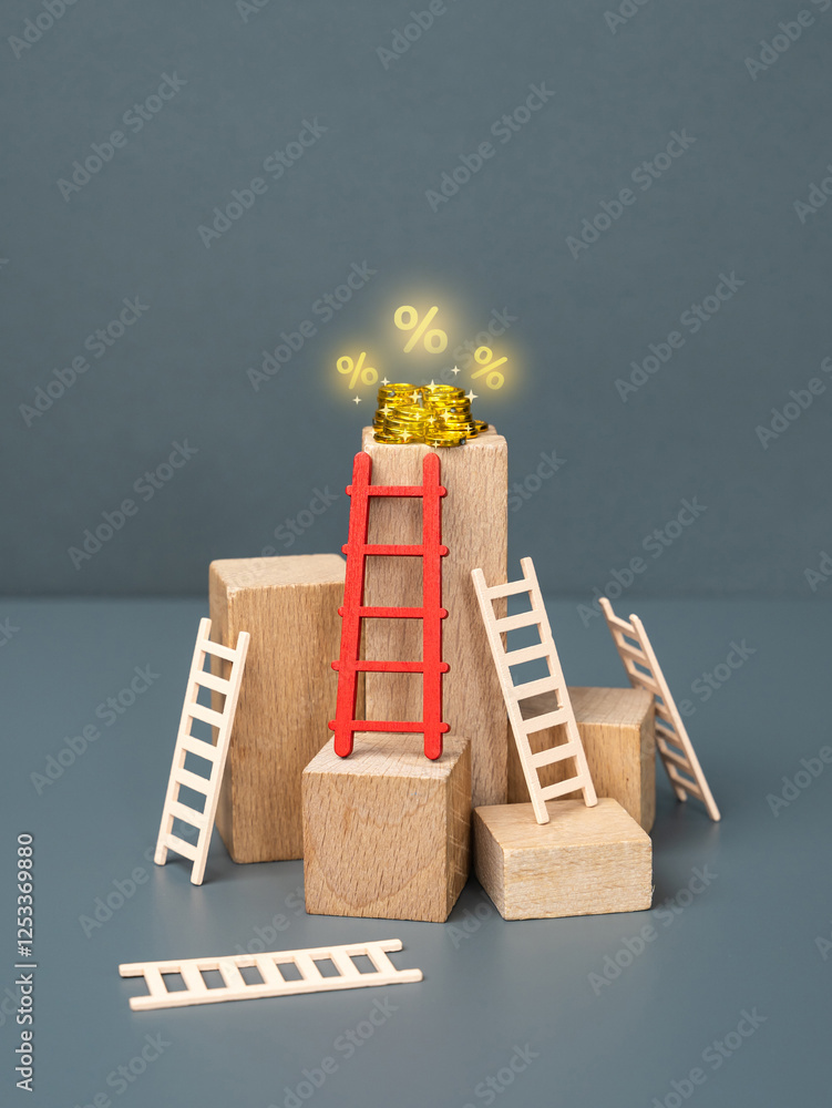 Stacks of coins on top of a pedestal. Financial goal. Wealth accumulation, investment growth, economic achievement, financial planning, personal savings goals, reaching monetary milestones