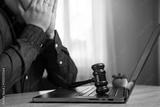 Frustrated man and court gavel on laptop. Laws and regulations. Restrictions and blocking of resources. Restrictions on access to the Internet. Internet earnings, regulation. Censorship