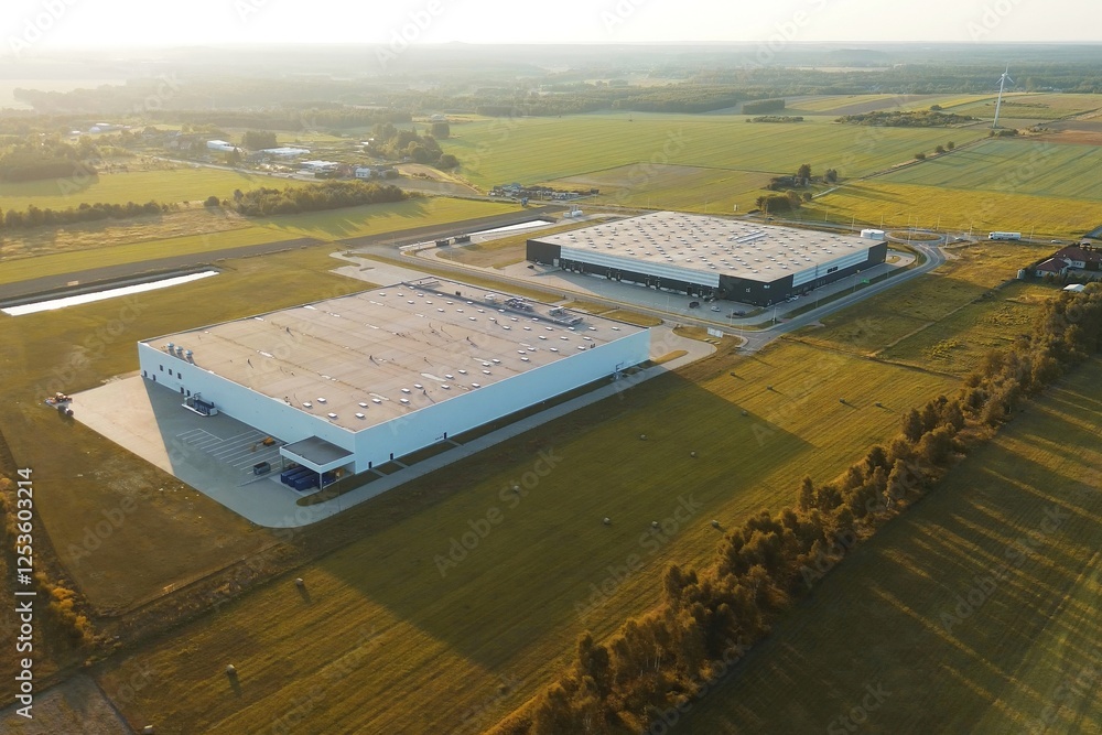 Large logistics center surrounded by fields