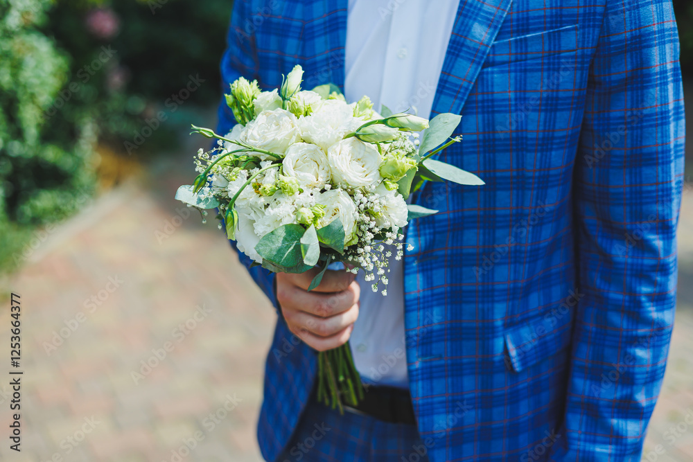 An Elegant Bouquet is Beautifully Presented by a Gentleman Dressed in a Checkered Suit