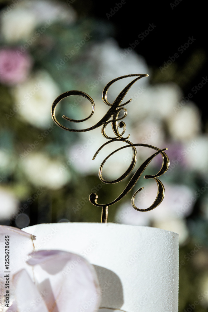 An Elegant Cake Topper Adorned with Initials Perfectly Crafted for Special Occasions