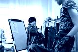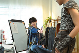 Young fashion entrepreneurs working on a denim project in a bright fashion studio