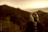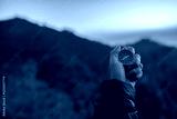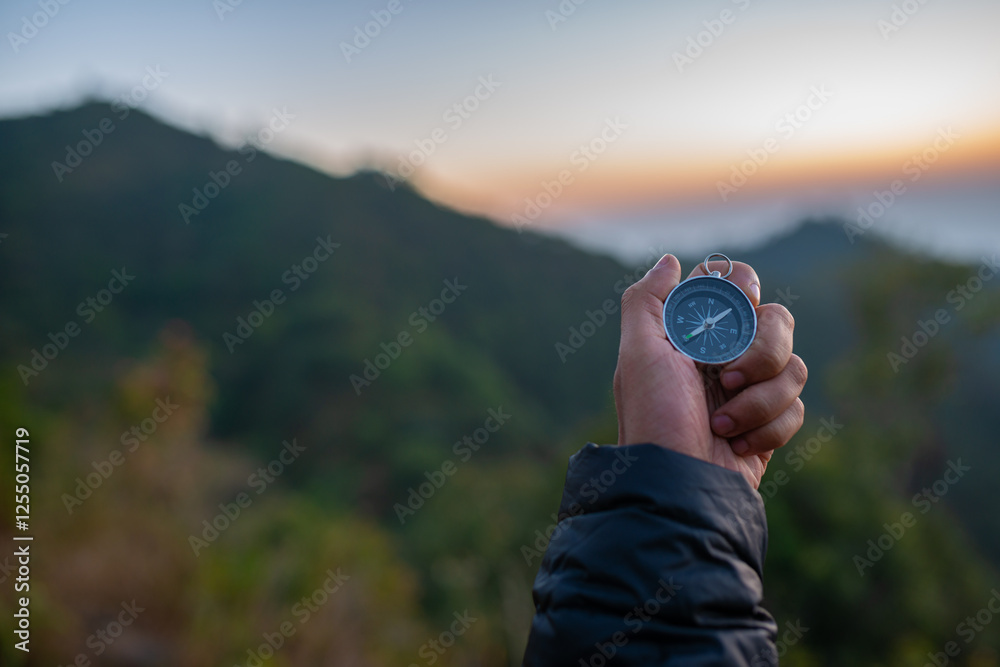 Hiker navigates the journey using a compass, exploring the wilderness with confidence