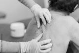 A healthcare professional performs a massage on an elderly woman at a rehabilitation center. Concept enhancing health and relieving muscle pain through effective therapeutic treatments.