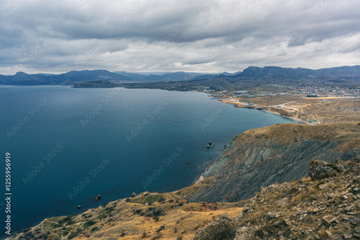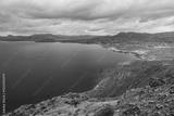 Scenic view of a tranquil lake surrounded by mountains and hills under a cloudy sky in southern region