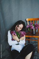A Woman Joyfully Embracing Stunning Lilac Blooms in a Beautifully Serene Setting