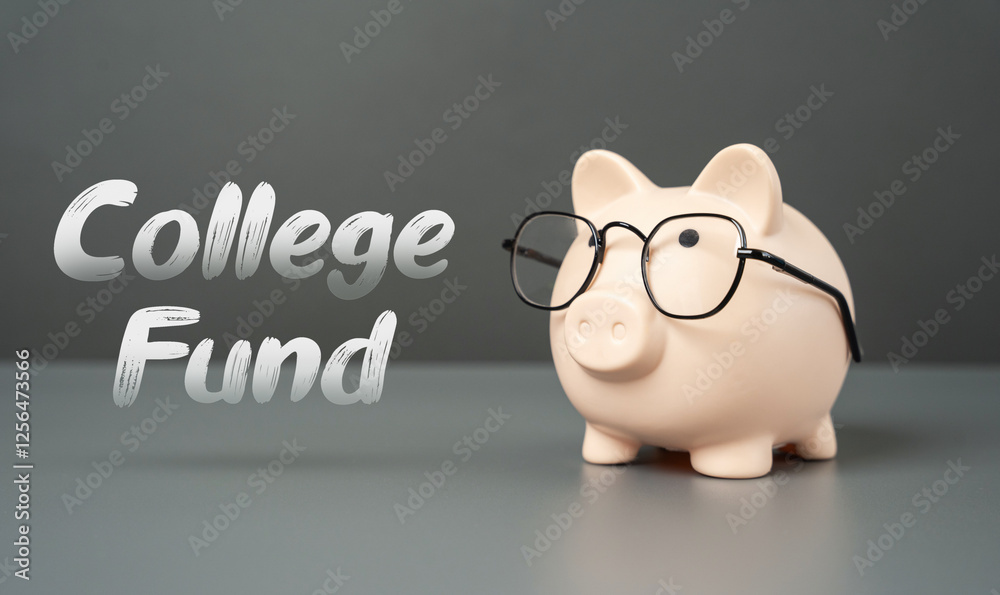 College fund and piggy bank with glasses. Concept of collecting money for education. Financial planning, tuition savings. Scholarship. Student loans