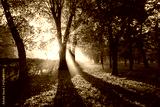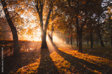The morning sun breaks through the branches of the tree in sunny weather.