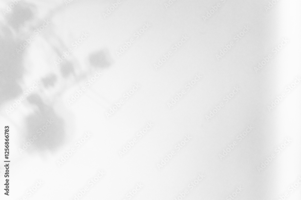 Plant leaves sunlight natural shadow overlay on white wall background.