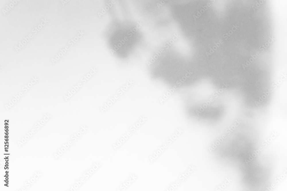 Plant leaves sunlight natural shadow overlay on white wall background.