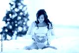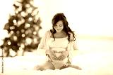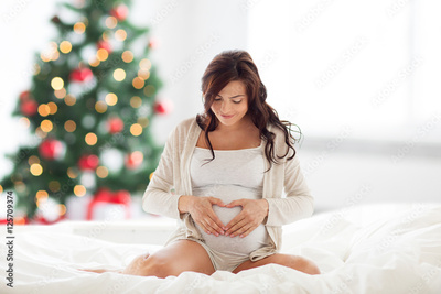 happy pregnant woman making heart at christmas