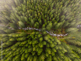 Aerial top view of summer green trees in forest mountain in Slovakia. Drone