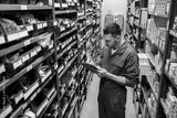 auto mechanic or smith with tablet pc at workshop