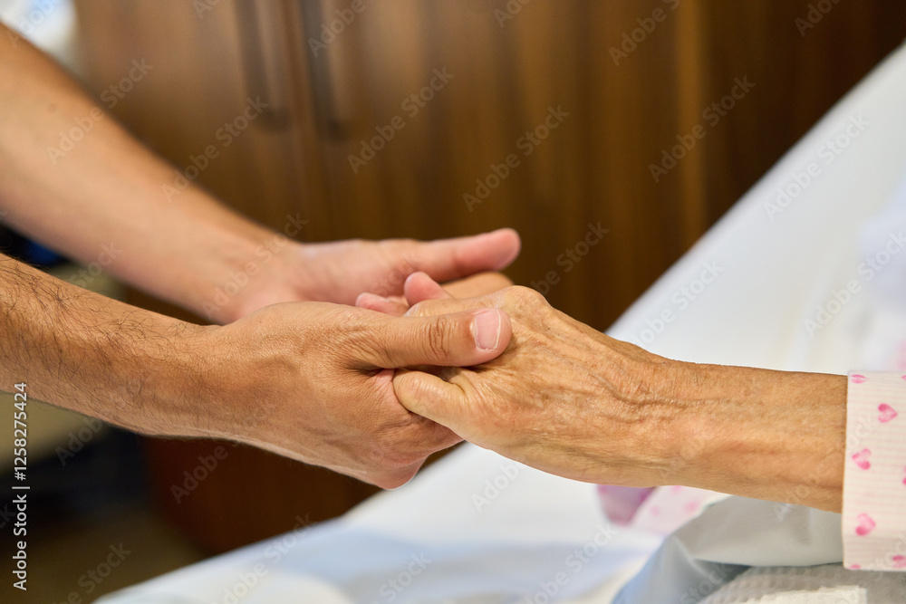 Compassionate caregiving with a caregiver holding senior hands in a care facility