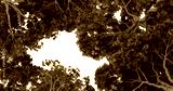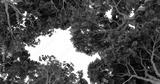 Forest canopy opening, hole, dense foliage, aerial view. Possible use Nature background, wallpaper