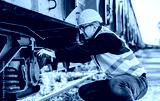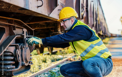 Safety first. Technician controls correctness of the freight car. Transportation concept