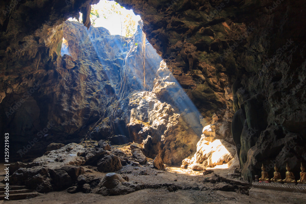 Sunbeam in cave kaoluang mountain in phetchaburi thailand